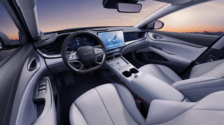 海豹07EV内饰同样延续海洋美学设计语言,以流畅动感的设计语言打造高品质座舱。环绕式仪表台采用“2+1”式三屏联动,搭配W-HUD抬头显示系统,视野开阔、交互便捷;怀挡设计简洁利落,中央通道区域配备车载冷暖冰箱、无线快充等实用配置,日常用车舒适度拉满;座椅采用精致波浪缝线,或支持通风、加热、按摩多种功能,空间格调和舒适性兼备。