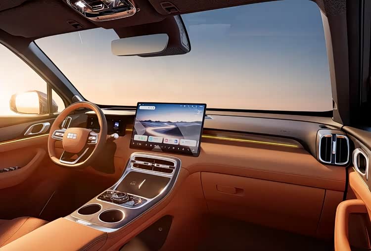 岛台那里还搞了点木纹饰板和水晶元素,配上大面积的生态麂皮。吉利这是想在15万这个级别里,硬生生抠出点豪华感来。