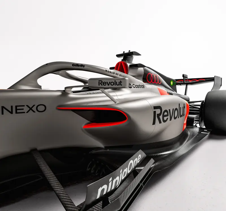 奥迪选择在2026年这个节点加入F1,并非偶然。这项赛事即将迎来其第77个赛季,同时也将开启一轮意义深远的技术规则变革。新规之下,2026年的赛车将配备主动空气动力学系统,车辆的前翼和尾翼可以在行驶过程中进行动态调节。沿用多年的DRS(可调式尾翼)系统将被一种名为“推进模式”的新功能取代。车手可以通过方向盘上的按钮激活这一模式,瞬间释放电池储备的最大电能,用于超车或防守。按照新规,电动机的输出功率将大幅提升至350千瓦,这与那台使用可持续燃料的1.6升V6涡轮增压内燃机的功率(约400千瓦)已经非常接近。电能将在赛车动力中占据前所未有的高比例。值得一提的是,在可持续燃料的供应上,奥迪已经与英国bp集团建立了独家合作关系。