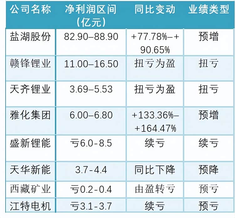 上游“躺赢派”:盐湖股份一骑绝尘,豪取82.9亿至88.9亿净利润,同比增长超九成,证明了“有矿就是爷”的硬逻辑。