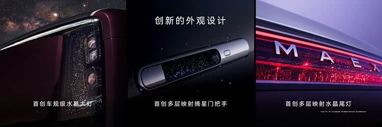 外观与工艺设计上,尊界S800首创车规级水晶大灯、多层映射门把手与多层映射水晶尾灯,以创新设计语言诠释旗舰格调;中央控制旋钮采用巴黎饰钉纹理,搭配星环散射体切割镜面手工抛光工艺、胡桃木高光工艺10,将车内豪华质感拉满。