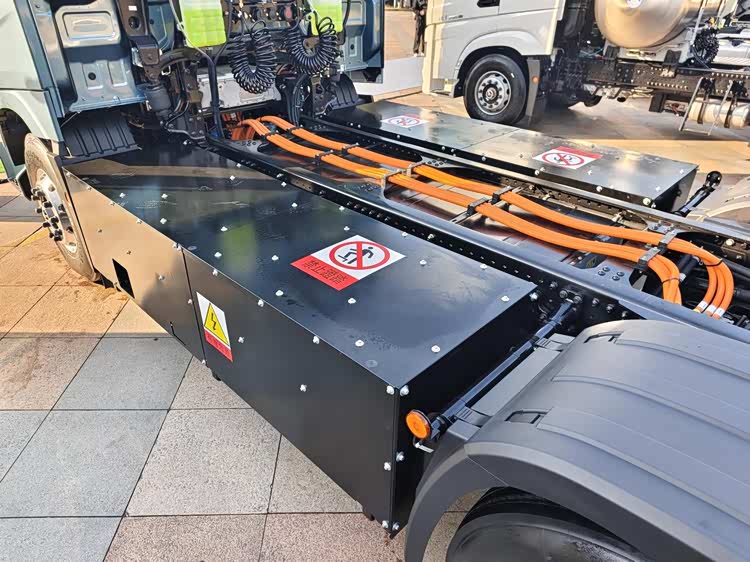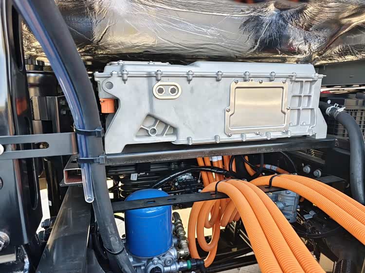 其次是优秀的底盘强化与防护,车架采用高强度钢材料,电池框与车架一体化设计,有效提升结构刚性;三电系统达到IP68+ 高防护等级,高压线束采用专用护套与限位固定,避免振动磨损、涉水短路隐患,满足重载复杂路况长期运营。更值一提的是,蓝梦7所搭载的宁德时代第四代电池、绿控双电驱桥、高集成控制器,全链路经过极限工况耐久验证,在高频充放电、连续重载输出场景下,电池衰减可控、电驱可靠性达标,可切实降低全生命周期故障率。