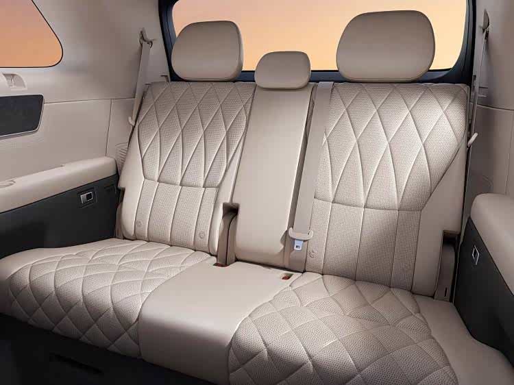 比亚迪大唐采用2+2+3的7座布局,两排类似两张零重力座椅,均带有独立扶手和腿托,扶手内侧还设置了调节座椅的物理按键,包括二排小桌板、吸顶屏、车载冰箱等配置也都一应俱全。