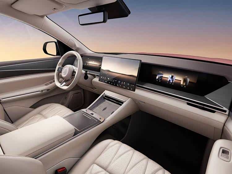 比亚迪大唐内饰采用环抱式设计,采用了液晶仪表+悬浮中央大屏+副驾娱乐屏组成的三屏造型,配合大量的皮质包裹、木质纹理装饰、菱形纹路座椅等等,营造出不错的档次感。