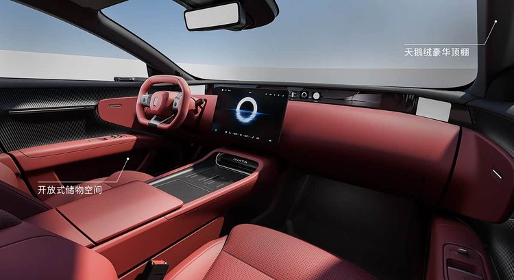 进入车内,可以看到设计师对许多细节进行了重新打磨。方向盘是变化比较明显的地方,新增了两个实体物理按键,分别用于一键激活语音助手和启动“Boost”加速模式,这为常用功能提供了更直接的操作方式。监测驾驶员状态的系统也进行了优化,旨在更准确地识别疲劳驾驶行为。车门区域的设计考虑了实用性与美观的结合,对门板扶手进行了调整,优化了应急拉手的结构,并将此前集成为触控式的车窗控制键改为实体按键,这一改动可能更符合部分用户的操作习惯。车门下方的储物空间被改成了开放式设计,方便乘客随手放置物品。车顶内衬采用了触感更柔和的天鹅绒材质包裹,意在提升舱内的质感。为了扩展用车场景,车辆后排增加了名为“AVATR MAG”的磁吸连接点,可以用于安装一些兼容的扩展配件,比如平板电脑支架或储物袋等。