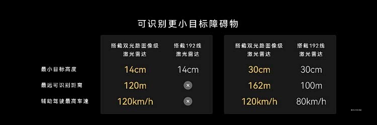 据鸿蒙智行公布的官方实测数据,这款896线激光雷达的分辨率实现4倍提升,可识别120米外高度仅14厘米的低矮障碍物。相比192线激光雷达,其对低反射率物体的识别距离提升190%,对异形障碍物识别距离提升77%。即便在130km/h的高速行驶状态下,车辆也能依托该雷达实现安全避障。
