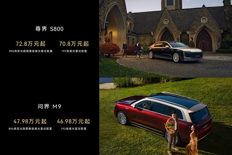 发布会上,鸿蒙智行正式启动搭载该激光雷达的车型预定。其中,尊界S800新款配置车型官方指导价72.8万元起,问界M9新款配置车型官方指导价47.98万元起。两款车型的新款配置版本,分别比192线激光雷达版本价格增加2万元和1万元。