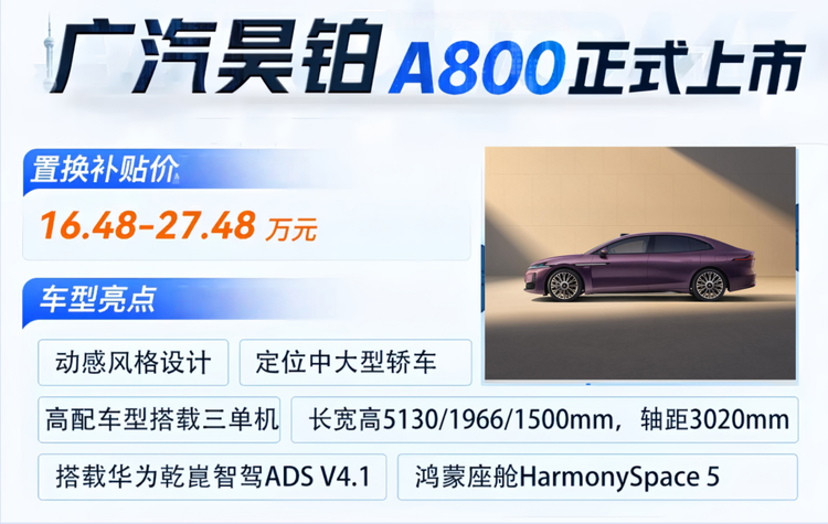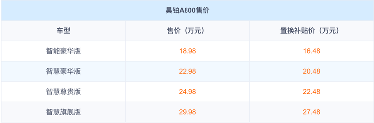 它就是3月4日刚上市的 昊铂A800(参数|询价),指导价18.98-29.98万,置换后16.48-27.48万。最狠的不是价格低,而是它把“行政轿车体验”直接压进了A6L终端区间。