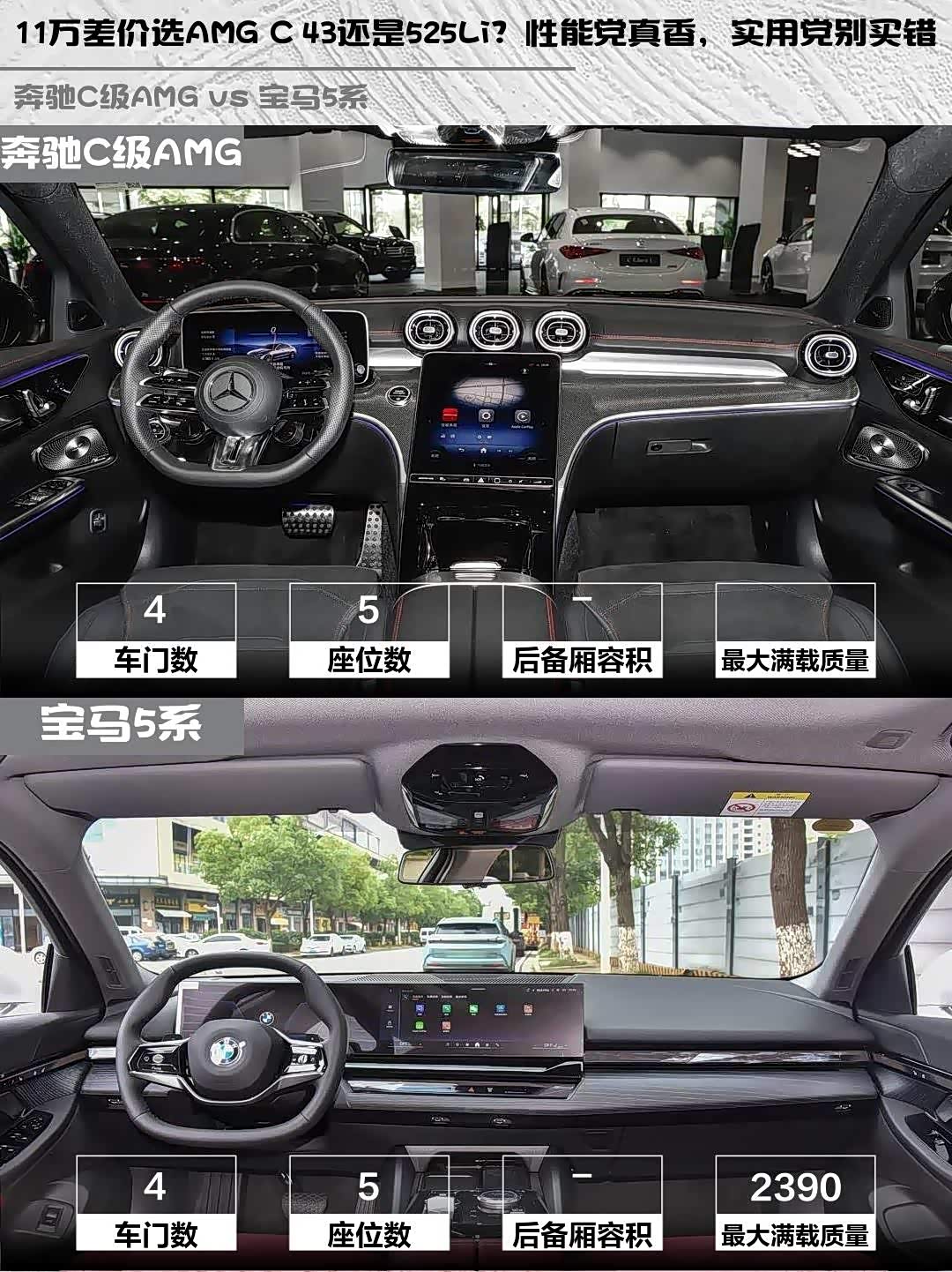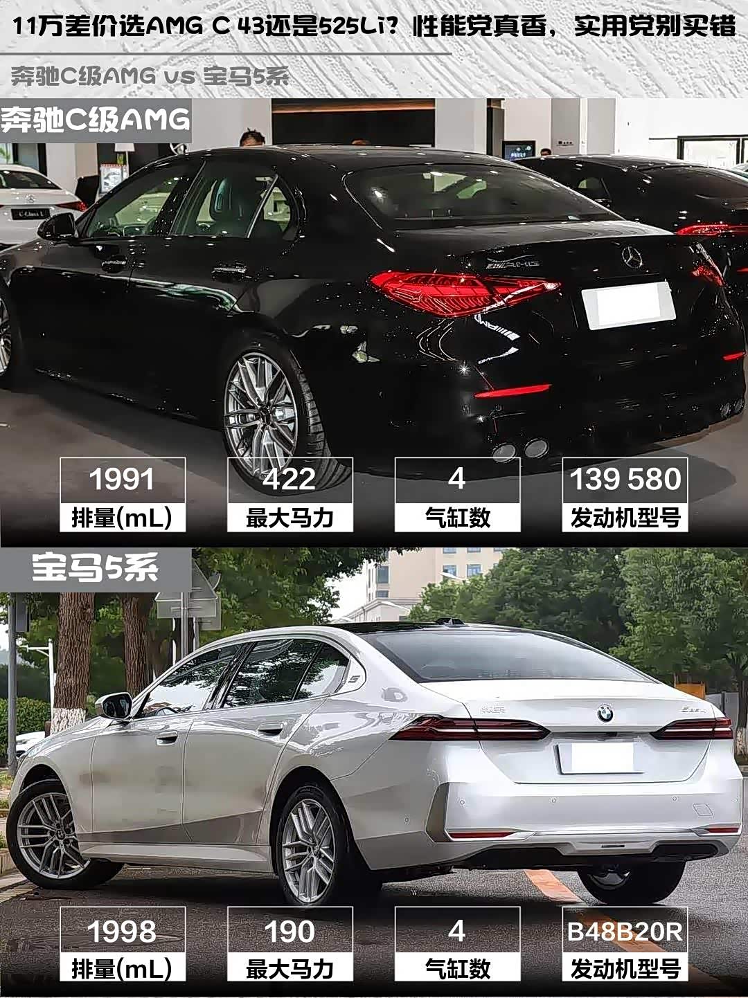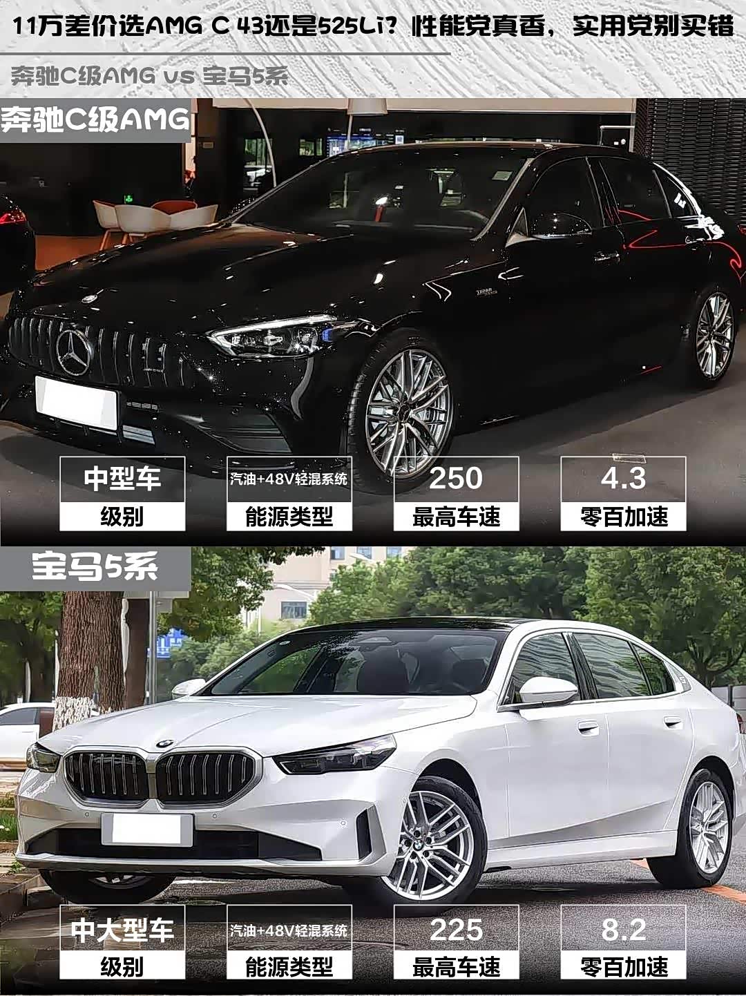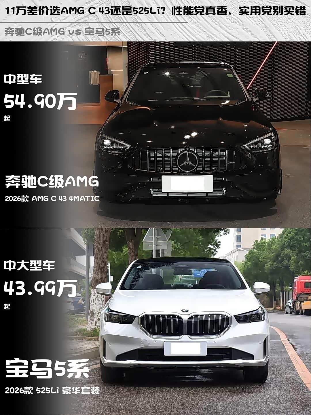 奔驰C级AMG(参数|询价) 2026款 AMG C 43 4MATIC vs 宝马5系 2026款 525Li 豪华套装,谁才是你的心头好?🔥