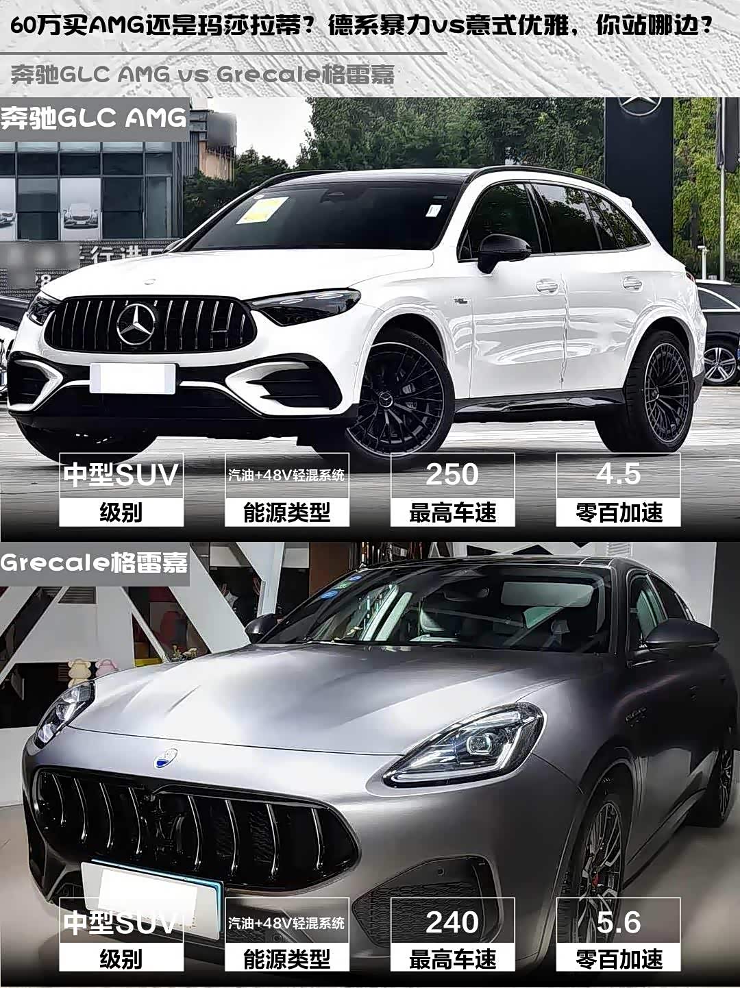 先说结论:要纯粹驾驶激情选GLC AMG,要意式腔调选格雷嘉。这两台车我都深度试驾过,分享点真实感受👇