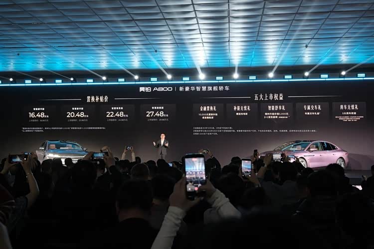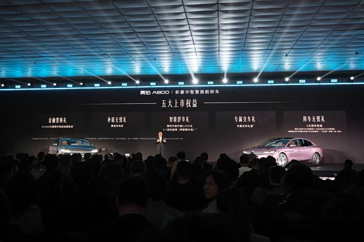 3月4日, 昊铂A800(参数|询价)正式上市,新车共推出4款配置车型,官方指导价18.98-29.98万元,限时置换补贴价16.48-27.48万元。该车定位于昊铂品牌中大型旗舰轿车,搭载了最新的华为乾崑智驾ADS V4.1和鸿蒙座舱HarmonySpace 5,顶配版车型激光雷达采用了华为刚刚发布的896线激光雷达,与新款尊界S800同时上新。
