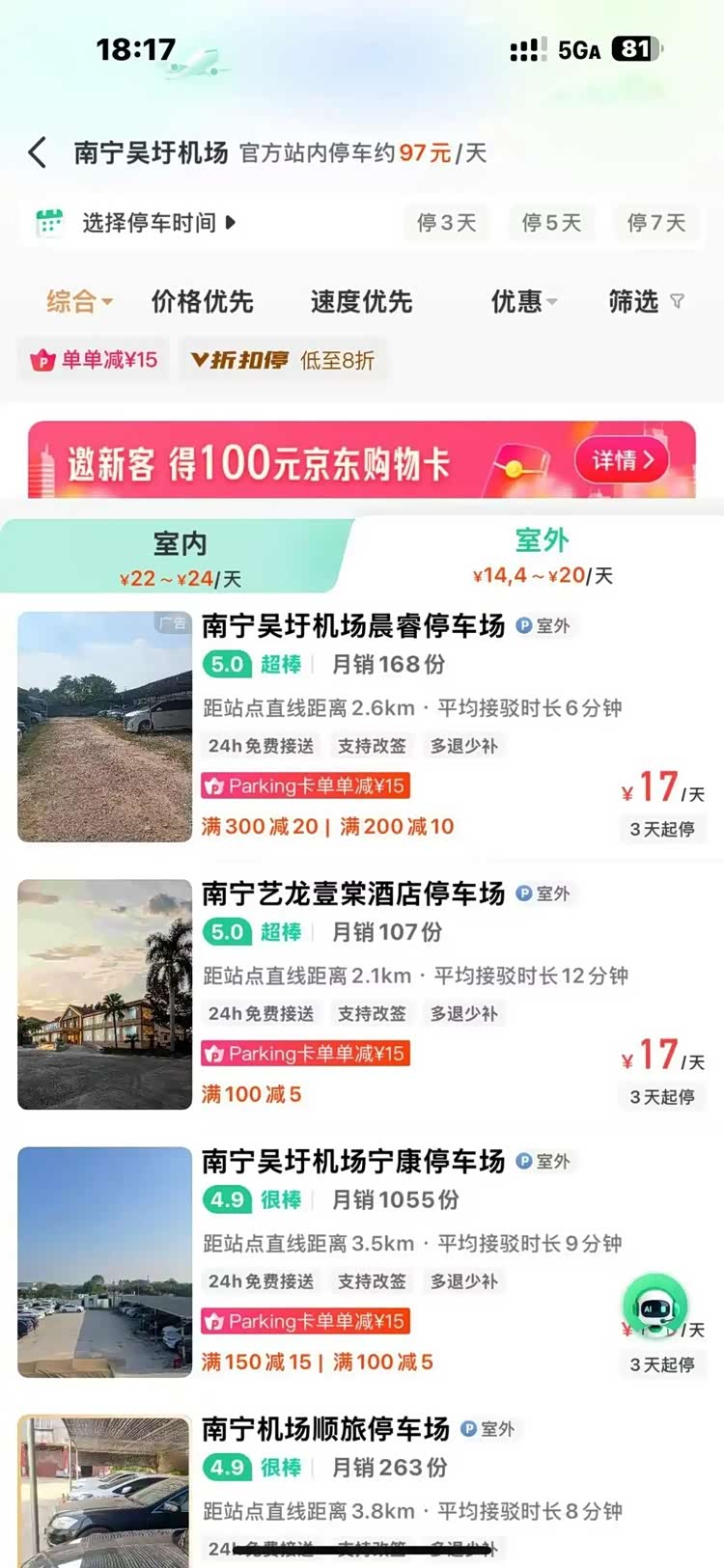 别愁啦!微信搜索【小强停车】,一键预约吴圩机场周边停车场。输入邀请码“88”,能领38元停车抵扣券,小强停场预约每天停车费只需14.4元!停好车还有免费接送服务直达候机楼,便捷实惠一步到位,助你春节出行轻松又省心!