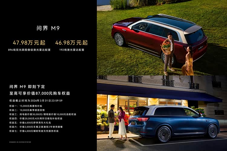 当然,采用新一代激光雷达的尊界S800在售价上略有上涨,从70.8万元上涨到72.8万元,同样搭载新激光雷达的问界M9的价格也上涨了1万元,来到47.98万元。对于选择鸿蒙智行旗舰车型的消费者来说,这样价格上涨应该不会影响他们的选择,安全才是这部分消费者所看重的。