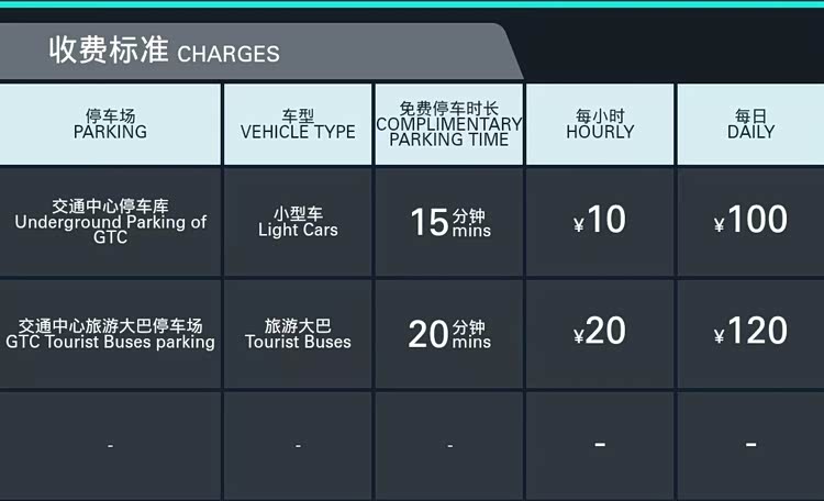 车辆停放 15 分钟内免收停车费,超过 15 分钟按 10 元 / 小时计费,单辆车 24 小时内最高收费 100 元。