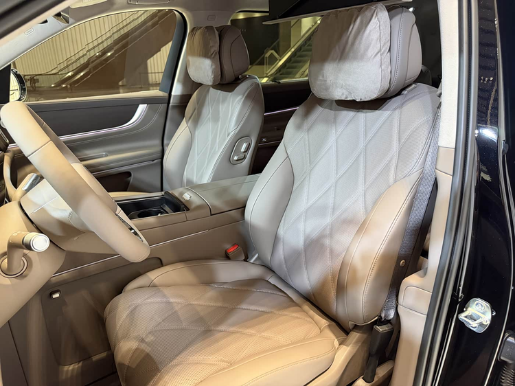 乘坐部分,新款问界M9全系标配真皮座椅,功能配置也是直接拉满,像主副座椅腰部支撑/腿托调节、主副驾驶座电动调节、前排座椅加热/通风/按摩/头枕扬声器、电动座椅记忆、二排零重力座椅、三排座椅电动调节/加热等通通没有缺席,加上HUAWEI SOUND扬声器、自动空调、热泵空调、后排独立空调、车载冰箱、1680万色车内氛围灯等一系列高端配置,全面保障用户的驾乘体验。