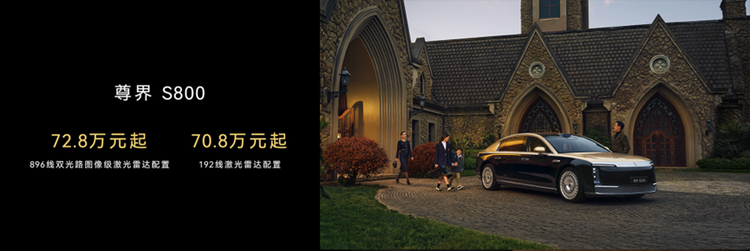 其中,搭载896线双光路图像级激光雷达的尊界S800,售价72.8万元起,相比搭载192线激光雷达的车型贵2万元;