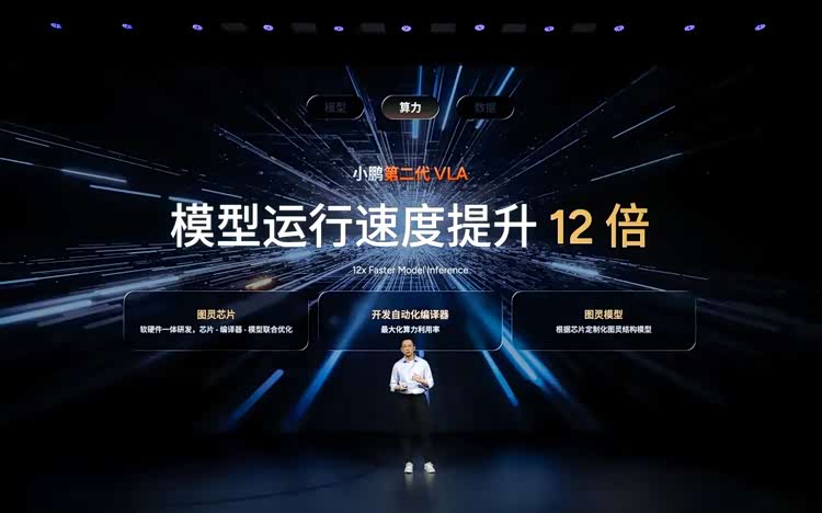 刘先明介绍,小鹏也同时根据了芯片和编译器定制了图灵结构模型。正是因为有了全栈式联合研发,这使得第二代VLA模型在车端运行的速度整整提升了12倍。