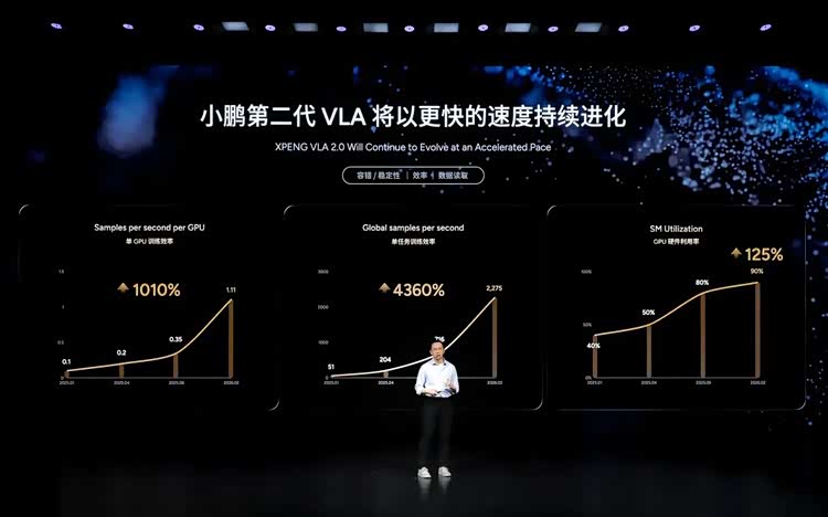 他介绍称,从去年11月小鹏科技日到现在,小鹏一共更新了468版模型,平均每天接近4版。一个上十亿参数的大模型,能达到这个效率,足以证明小鹏的AI基础设施非常强大。
