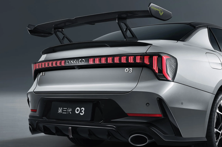 作为基于领克032.0T车型打造的衍生版本,新车的核心亮点集中在空气动力学套件与动力性能的结合上。其标配的三段可调碳纤维尾翼,支持0度、8度、16度三档调节,不同角度可适配不同行驶场景,低速行驶调至0度,兼顾车身美观与风阻控制;高速行驶调至8度或16度,能有效提升车身下压力,让高速过弯、超车时的车身稳定性大幅增强。尾翼侧部还刻有宁波国际赛道地图标识,呼应了领克的赛道基因,尾部则延续了领克032.0T车型标志性的双边双出排气系统,保持了运动化的视觉表达。