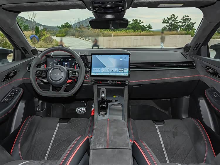 进入车内,内饰采用运动化设计风格,以驾驶者为中心,兼顾战斗氛围与日常实用性。中控台搭载12.3英寸全液晶仪表盘+12.8英寸中控大屏的双联屏组合,搭载Flyme Auto车机系统与龙鹰一号芯片,操作流畅无卡顿,支持语音控制、手机互联等功能,日常使用便捷。空间表现方面,前排空间宽敞,178cm乘客乘坐时,头部与腿部空间充足,座椅支撑性到位,长途驾驶不易疲劳。