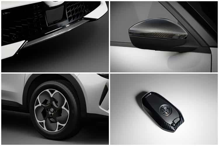 在此同时,Junior Ibrida Edizione Bianco 特别版在前保险杆下缘、车侧后视镜盖等处也加入碳纤维装饰,脚下则换装 18 寸五环式空力铝圈,进一步强化整体动感气息。此外,原厂也特别准备配备了专属的碳纤维钥匙,彰显限量特别版的特殊身份。