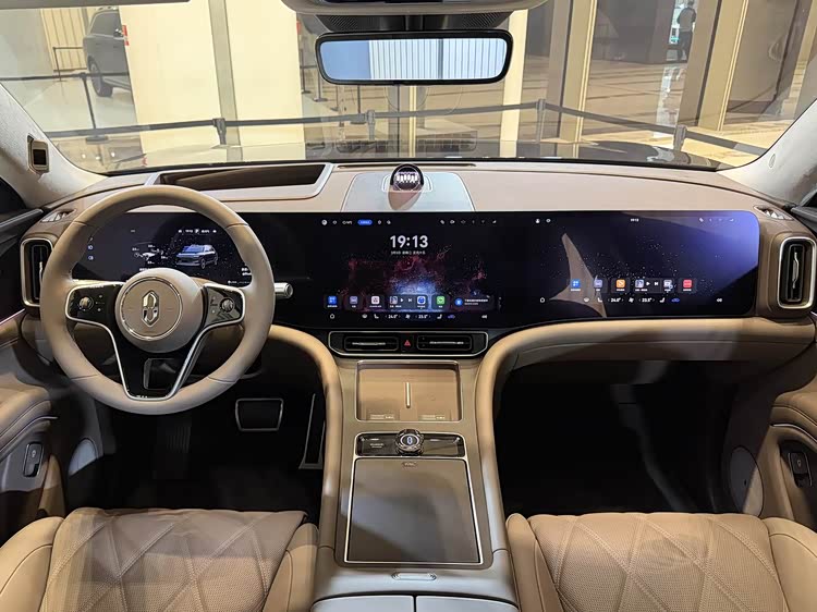 进入车内,内饰是问界M9的核心优势所在,以“全场景豪华”为核心,融合鸿蒙智能科技与高端用料,打造沉浸式移动智能空间。科技配置方面,车内搭载12.3英寸液晶仪表+15.6英寸中控屏+16英寸副驾娱乐屏的三联屏组合,配合75英寸AR-HUD抬头显示,形成多维度交互中心。车机搭载华为鸿蒙4.0系统与高通骁龙8295芯片,操作流畅无卡顿,空间表现方面,得益于3110mm长轴距与纯平地板设计,实现“三排无差别豪华”,2725mm的车内乘员空间很宽裕。