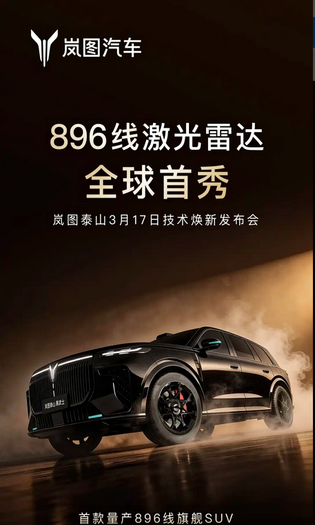 3月5日,官方确认岚图汽车旗下 岚图泰山(参数|询价)黑武士将于3月17日发布,并有望同步公布售价与配置体系。结合已披露信息来看,该车在智能驾驶硬件与插电式混合动力结构上同步升级,目标指向具备长续航能力与高阶辅助驾驶能力的中大型SUV细分市场。从产品命名与配置规格判断,黑武士版本在外观风格与智驾硬件层面均有所强化,属于现有产品序列中的高配延展。