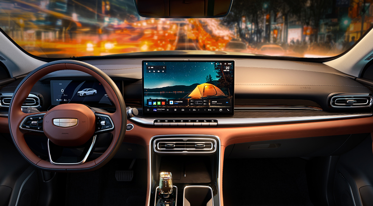 这种转变首先体现在视觉与触觉的双重革新上。当你拉开车门,10.2平米的内饰软包面积让目光所及、手之所触皆被柔软覆盖。而真正让座椅实现“入座如云朵般柔软”的,是那8层夹心结构里的20mm慢回弹海绵与低滞后发泡海绵——前者提供初坐时的温柔包裹,后者则保证了长途乘坐时久坐不累的支撑性。在细节处,第5代帝豪展现了对“质感”的追求:水晶挡把经过3D研磨技术打造出50多个菱形切面,高级水晶照明灯罩采用钻石切割工艺,甚至连仪表板和车门板上的饰板都经过特殊清漆处理,呈现出水晶般的亮黑效果。这些以往在15万级以上合资车型上都未必能见到的配置,被毫无违和感地融入了一台A级家轿。