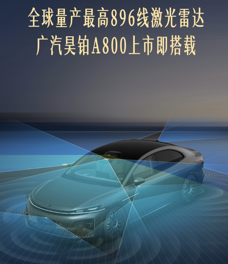 昊铂A800,已经上市,在顶配车型上搭载896线激光雷达,售价29.98 万元。