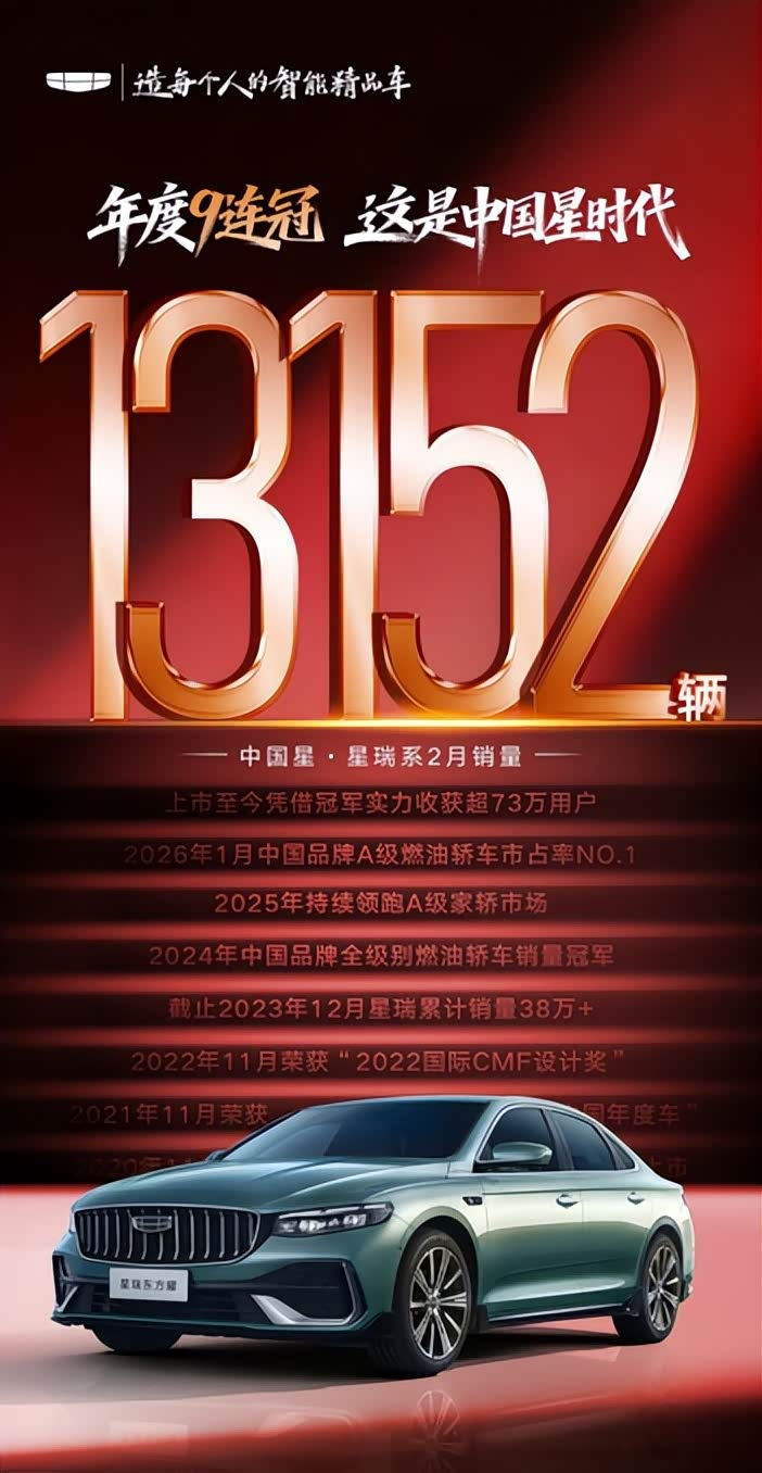 值得信赖!星瑞2月狂销13152辆,中国星时代势不可挡