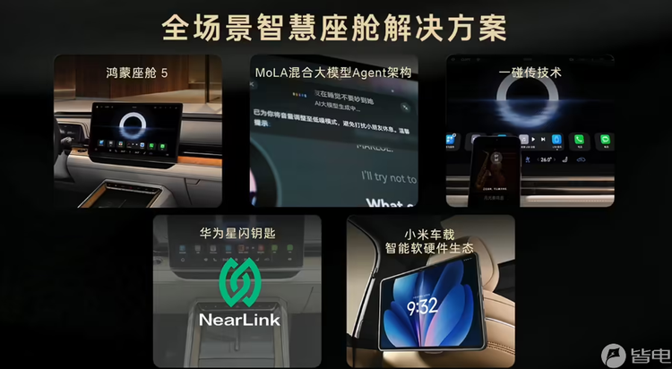 智能驾驶方面,Momenta的高阶智能辅助驾驶系统,支持高速/城市领航辅助驾驶、智能泊车等功能。含激光雷达在内的 27 个传感器可实现 360° 感知。此外,该车采用全场景智慧座舱解决方案,搭载鸿蒙座舱 5、MoLA 混合大模型 Agent 架构、一碰传技术、华为星闪钥匙、小米车载智能软硬件生态。
