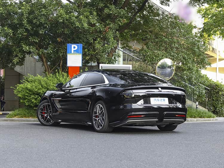 再来看车尾部分,车尾设计延续整车简约豪华基调,造型饱满圆润,与车头设计形成完美呼应。核心亮点是放射线条贯穿式LED尾灯,内部灯带精致,采用流水式点亮逻辑,夜间行驶辨识度极高,搭配车尾镀铬饰条,拉伸横向视觉宽度,凸显大气质感。车尾标配电动升降尾翼,优化空气动力学性能,同时强化运动氛围。纯电版采用隐藏式排气,插混版配备双边共四出排气布局,排气口采用镀铬装饰,彰显性能实力。