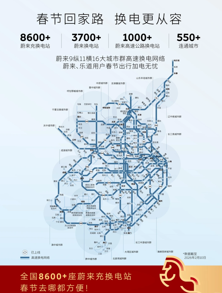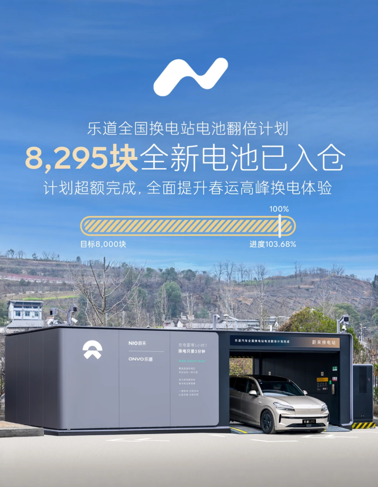 对于新能源家庭用户而言,春节高速出行的核心痛点莫过于续航和补能效率。而乐道节前的提前布局,在此次报告中得到了数据印证。据悉,乐道在2026年春节前超额完成“电池翻倍计划”,增投8295块全新电池包,同步依托蔚来共享的充换电网络,实现高速换电的便捷覆盖,更宣布春节期间全免高速换电服务费。