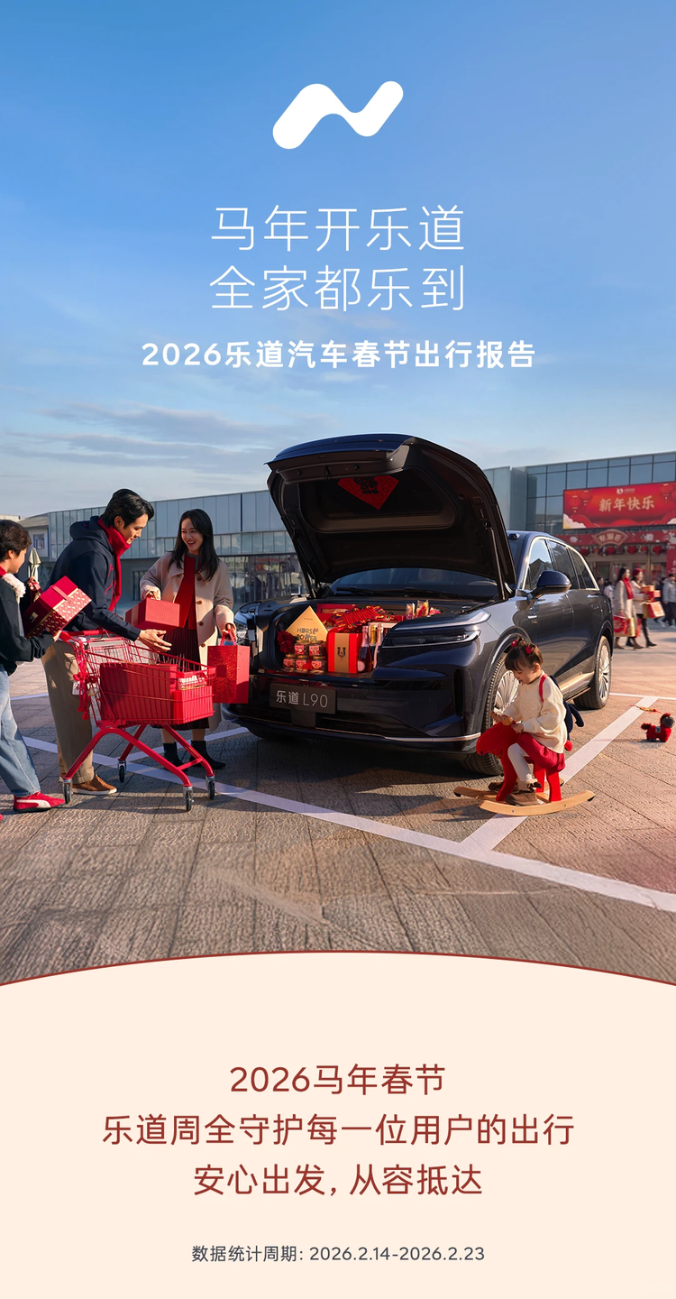 而春节出行,向来是检验家庭用车的“试金石”——续航焦虑、驾驶疲劳、空间不足、服务缺位,每一个痛点都关乎全家出行的体验。日前,乐道汽车也发布了《2026乐道汽车春节出行报告》(统计周期2026.2.14-2.23),用一组组真实数据,展现了其在解决家庭出行痛点上的务实努力。它更像是一次“用户体验答卷”,从补能、智能、服务等多个维度,勾勒出乐道对“家庭用车”的理解,也让我们看到其“更懂家庭”的品牌定位并非空谈。