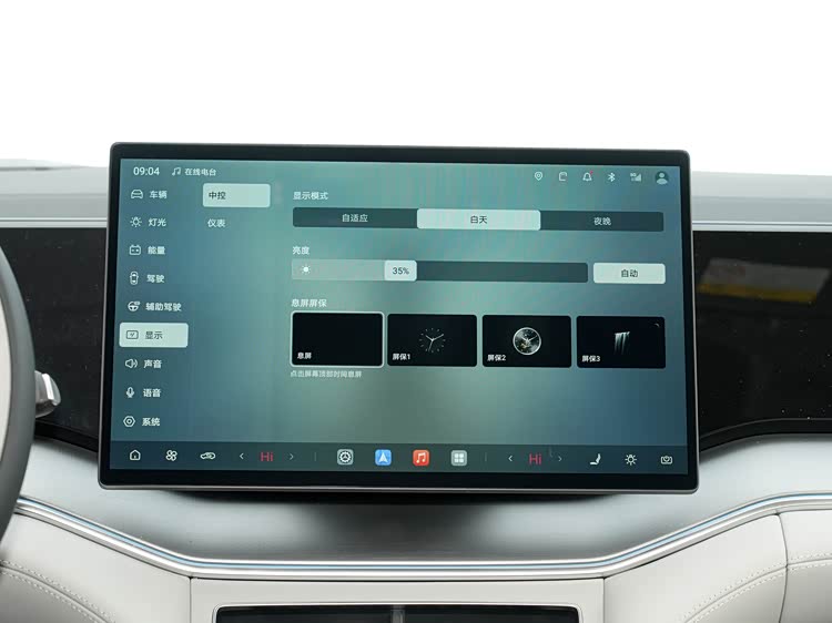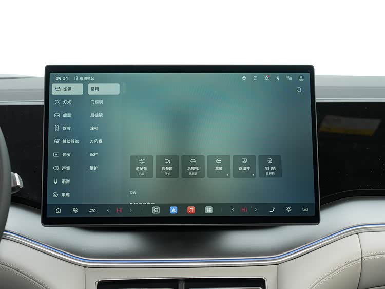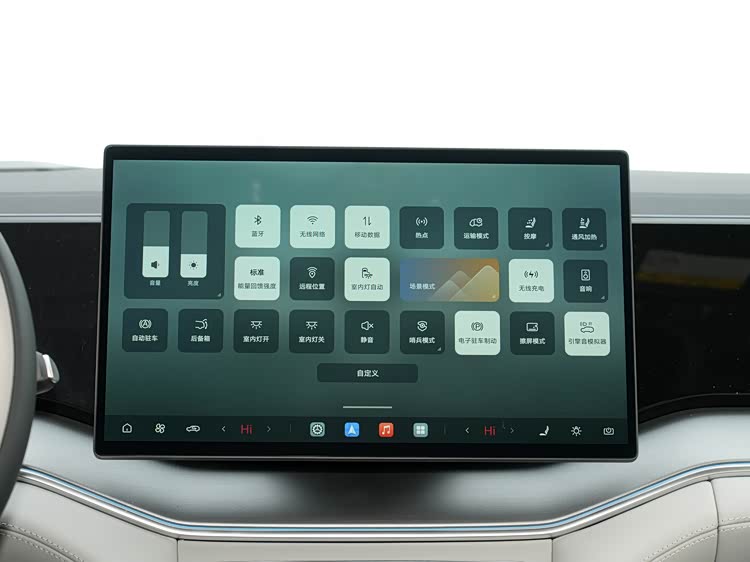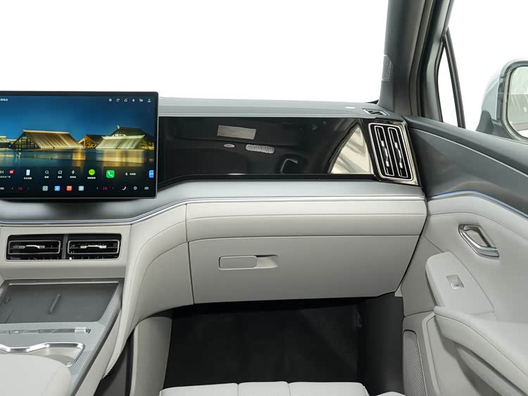 内饰延续王朝家族布局逻辑,中控台采用黑色高光饰板,搭配海盐灰或暮云灰内饰配色。全系标配15.6英寸悬浮式中控屏,支持多应用生态与四音区语音交互系统,在多乘员场景下可实现独立语音指令识别。方向盘为双辐式结构,采用怀挡换挡机构,使中控下方区域形成更大的开放式储物空间。无线充电面板设置在中央区域,保留实体快捷按键,兼顾触控与物理操作反馈。