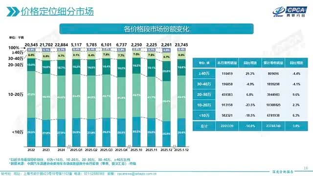 乘联会数据显示,2025年国内30万元以上高端车型市场份额已达到11.4%,较2015年的8.7%明显提升。若剔除30万元以上高端车型,当前10万–20万元主流消费区间车型均价,较2015年下降15%–20%。与此同时,8万元以下车型覆盖微型电动车与紧凑型轿车,可选产品数量较十年前翻倍。