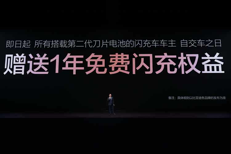 发布会现场,王传福还宣布:所有搭载第二代刀片电池的闪充车车主,均享有重磅“闪充权益”,自交车之日起,在全国闪充站可享受1年的免费闪充权益,让闪充体验更畅快。并且,在闪充免费期结束后,也会同行业保持一致,不会额外收费。