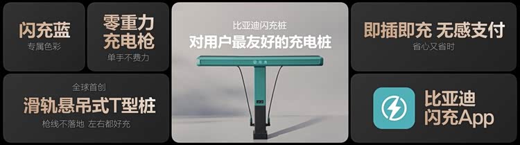 传统公共充电桩枪重、线脏、移动不灵活,充电流程还很繁琐,为了解决这些痛点,比亚迪闪充桩采用了全球首创的“滑轨悬吊式T型桩”设计,让线拉着枪,手感非常轻巧,几乎是“零重力充电枪”;并且,枪线永远保持悬空,避免缠绕更干净;还可以让用户轻松左右滑动,充电更灵活。同时,比亚迪还打通了车和桩之间的所有链路,只需通过比亚迪闪充APP简单设置,即可实现“即插即充,无感支付”,这就是对用户最友好的充电桩。