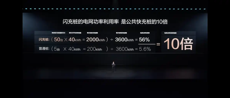 为解决这一问题,闪充站内部加入储能系统。通过超级快放储能模块,充电站可以在电网负荷较低时储存电能,在车辆充电时快速释放。这样可以在不增加电网容量的情况下,将普通100kW充电能力提升到约1000kW。通过储能系统的调节,一个闪充桩每天可以服务约50台车辆。与传统充电桩相比,利用率明显提高,这也使充电站的运营效率接近传统加油站模式。