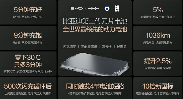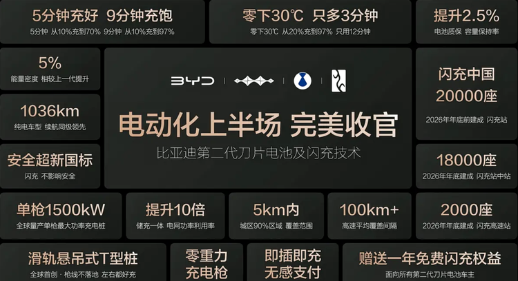 综合本次发布会信息可以看到,比亚迪将动力电池与充电体系同时升级。电池端通过结构优化提升充电效率与低温表现,补能端则通过兆瓦级闪充站提高充电速度。