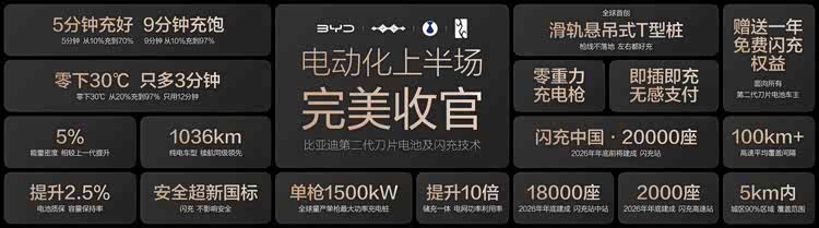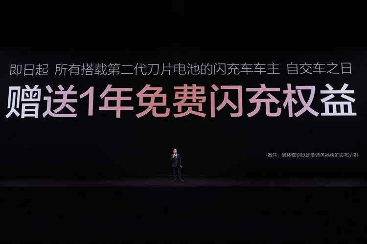 发布会现场,王传福还宣布:所有搭载第二代刀片电池的闪充车车主,均享有重磅“闪充权益”,自交车之日起,在全国闪充站可享受1年的免费闪充权益,让闪充体验更畅快。并且,在闪充免费期结束后,也会同行业保持一致,不会额外收费。