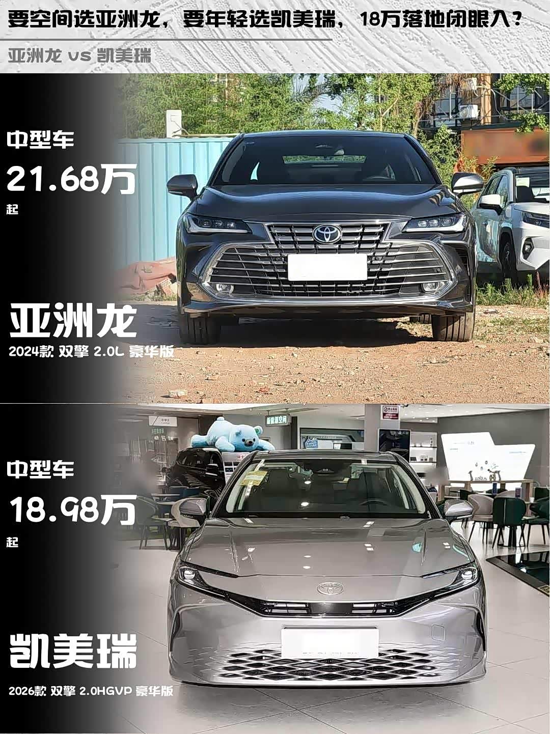 最近在选车的小伙伴看过来!丰田双擎家族的两大热门选手—— 亚洲龙(参数|询价)2024款双擎2.0L豪华版和凯美瑞2026款双擎2.0HGVP豪华版,到底该怎么选?作为深度体验过两台车的车主,掏心窝子分享真实对比感受👇