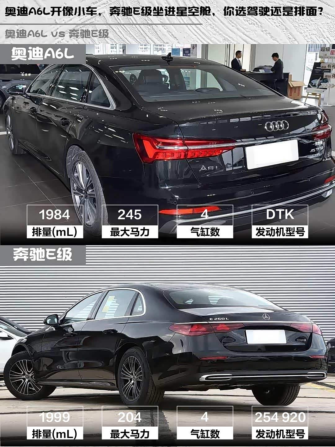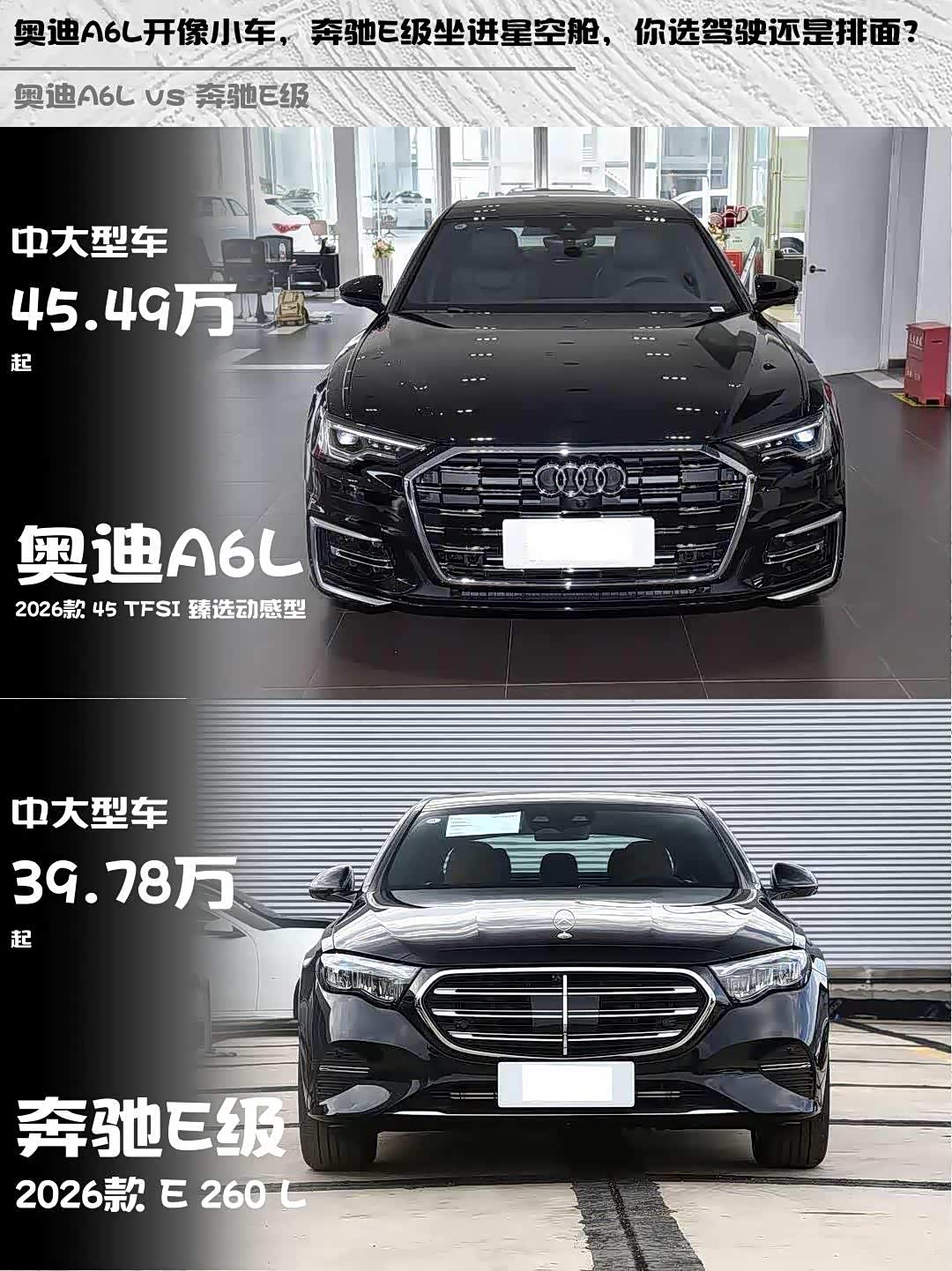 奥迪A6L(参数|询价) 2026款 45 TFSI 臻选动感型 vs 奔驰E级 2026款 E 260 L,这两台德系豪华中大型车该怎么选?作为深度体验过两台车的车主,今天从真实用车场景聊聊它们的差异点👇