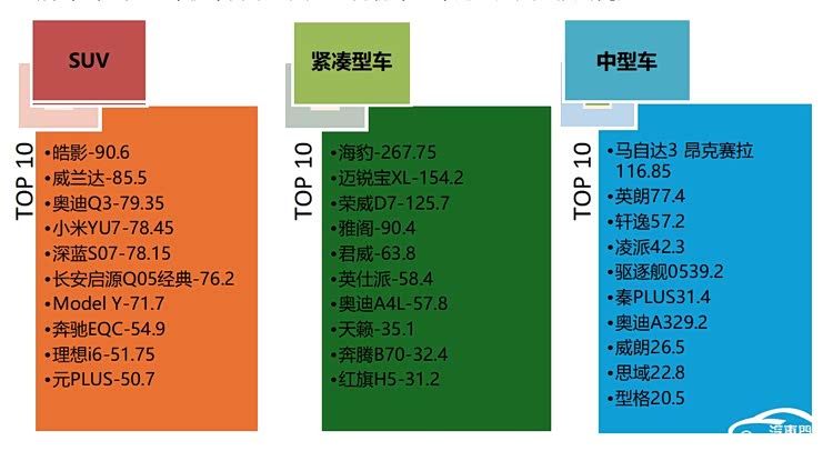 紧凑型车方面,马自达3昂克赛拉高居榜首,因空调膨胀阀生锈问题招致集中投诉。英朗紧随其后,转向卡滞异响又遭到了部分车主吐槽。其他紧凑型车未遇到典型投诉。
