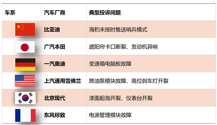 三、从涉诉车系看,本月各车系的投诉指数均大幅下降。保有量最大的中国本土车型仍然是重点投诉对象,但投诉集中度显著下降。海豹和荣威D7车机不升级、极狐T1减配护板成了典型投诉问题。日系车的投诉点主要集中于本田飞度、皓影、雅阁等投诉热门以及近来爆发集中投诉的马自达3昂克赛拉。奥迪仍然是德系车的最大槽点,变速箱机电单元故障是典型投诉对象。美系车的主要问题仍出自上汽通用旗下三大品牌。
