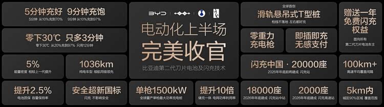 官方给出的数据相当亮眼:从10%充到70%仅需5分钟,10%到97%只需9分钟;即便在零下30度的低温环境下,20%到97%的充电时间也只比常温多3分钟。同时,比亚迪宣布启动“闪充中国”战略,计划年底前在全国建成20000座闪充站。截至发布会当天,已建成闪充站4239座,为后续网络铺开打下基础。