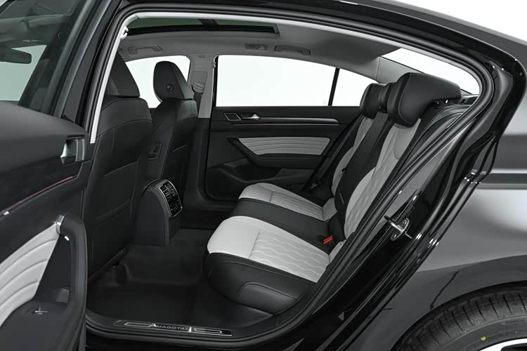 车内空间是迈腾的优势,身高178厘米的男生坐在后排,腿部有三圈半左右的距离,头部空间有一拳左右的距离,与奥迪A6L的第二排空间表现接近,只是后排地台中间位置的凸起比较高,会降低一点乘坐舒适性,全景天窗为后排增加了明亮度,长时间乘坐也不会觉得压抑。