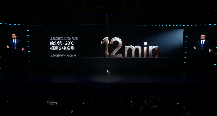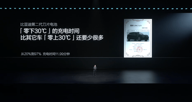 ▲比亚迪第二代刀片电池零下30度环境闪充速度