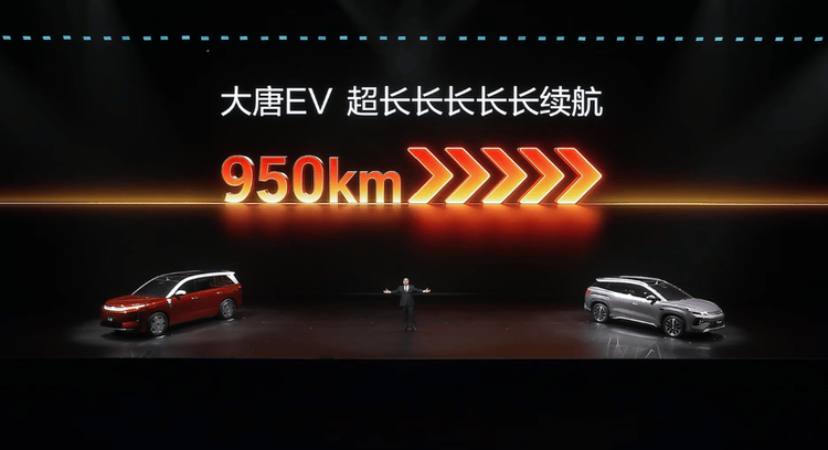 王朝首款D级SUV大唐也搭载了闪充技术和第二代刀片电池,车辆的CLTC纯电续航里程可达950公里。