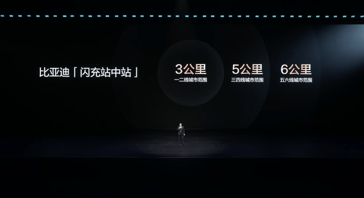 在一二线城市每隔3公里就会有一座闪充站,三四线城市每隔5公里会有一个闪充站,五六线城市每隔6公里就会有一个闪充站。